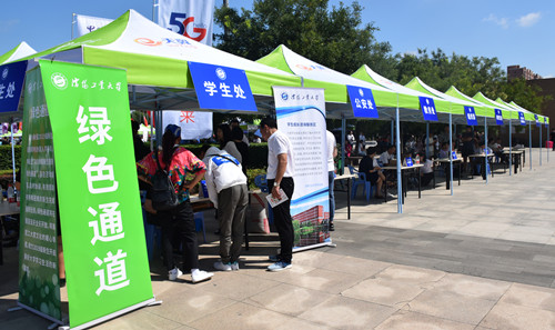 迎新现场,人头攒动,气氛热烈,却又秩序井然,各项工作有条不紊。今年学校启用全新的迎新管理系统,新生能够提前查询到班级、寝室及学校学院的相关通知,在网上进行预报到,提前采集个人基本信息。报到现场通过扫码确认报到状态,实现了科学、快捷、高效的一站式报到。通过迎新大数据的实时统计分析,报到进展情况一目了然。学校针对新生专门设立绿色通道服务站,开辟涵盖教务、资助、心理、招生、就业、党团等内容的“学生成长咨询服务区”,为家庭经济困难的学生办理学费缓交和困难资助申请。
