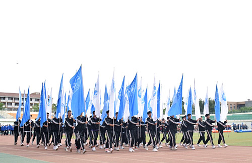伴随着催人奋进的乐曲,国旗、校旗、旗海方队、裁判员方队以及各参赛单位代表队依次进入运动场,整齐的步伐、统一的着装、响亮的口号,他们将以勇往直前、积极进取的精神气质在运动场上放飞理想,展现工大师生昂扬向上、拼搏奋进的精神风貌。