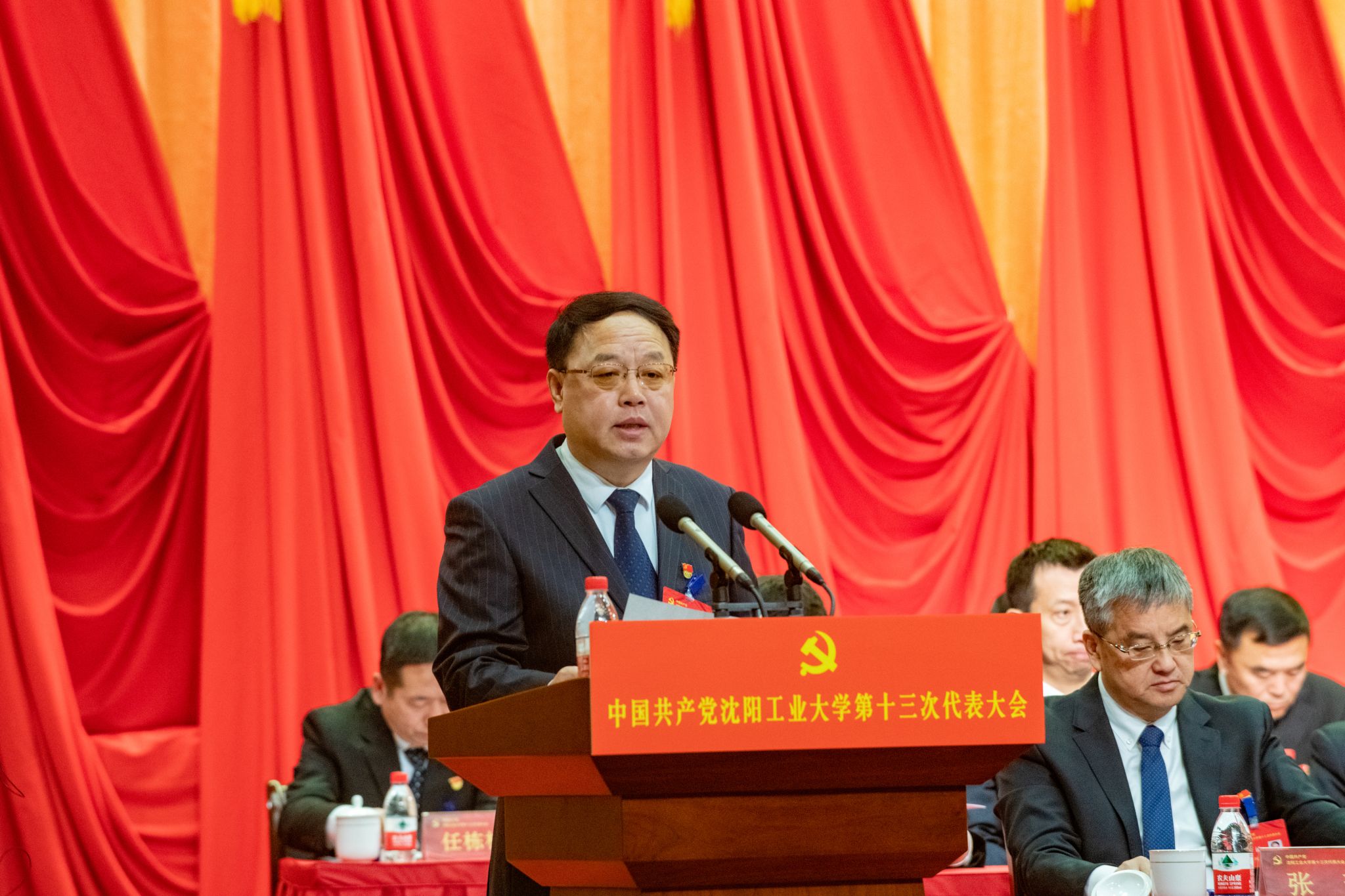 党委书记贾玉明代表学校第十二届委员会向大会作了题为《矢志科教报国 投身辽沈振兴 以高质量发展开创国内一流大学建设新局面》的工作报告。报告共分为四个部分:第十二次党代会以来的工作;新征程学校建设发展的战略部署;未来五年重点任务;坚定不移推进新时代党的建设。