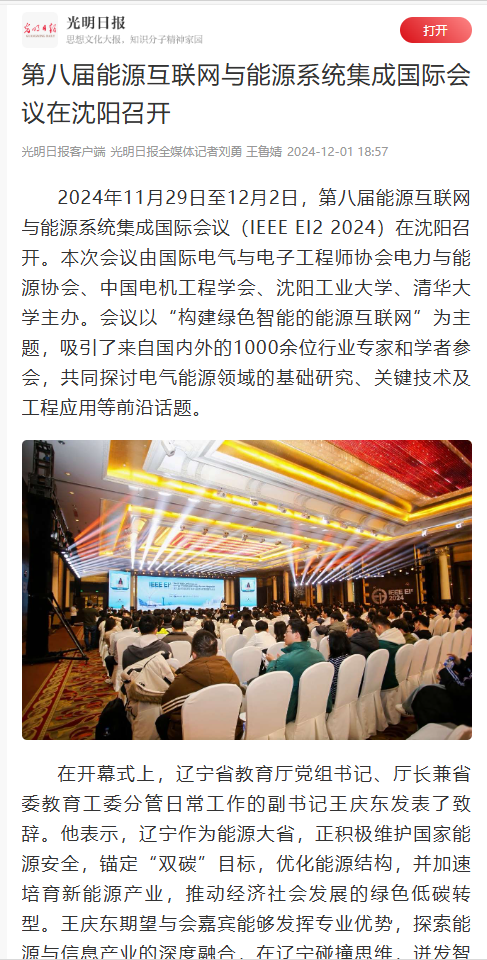多家媒体对我校主办的第八届IEEE能源互联网与能源系统集成国际会议进行全方位报道。